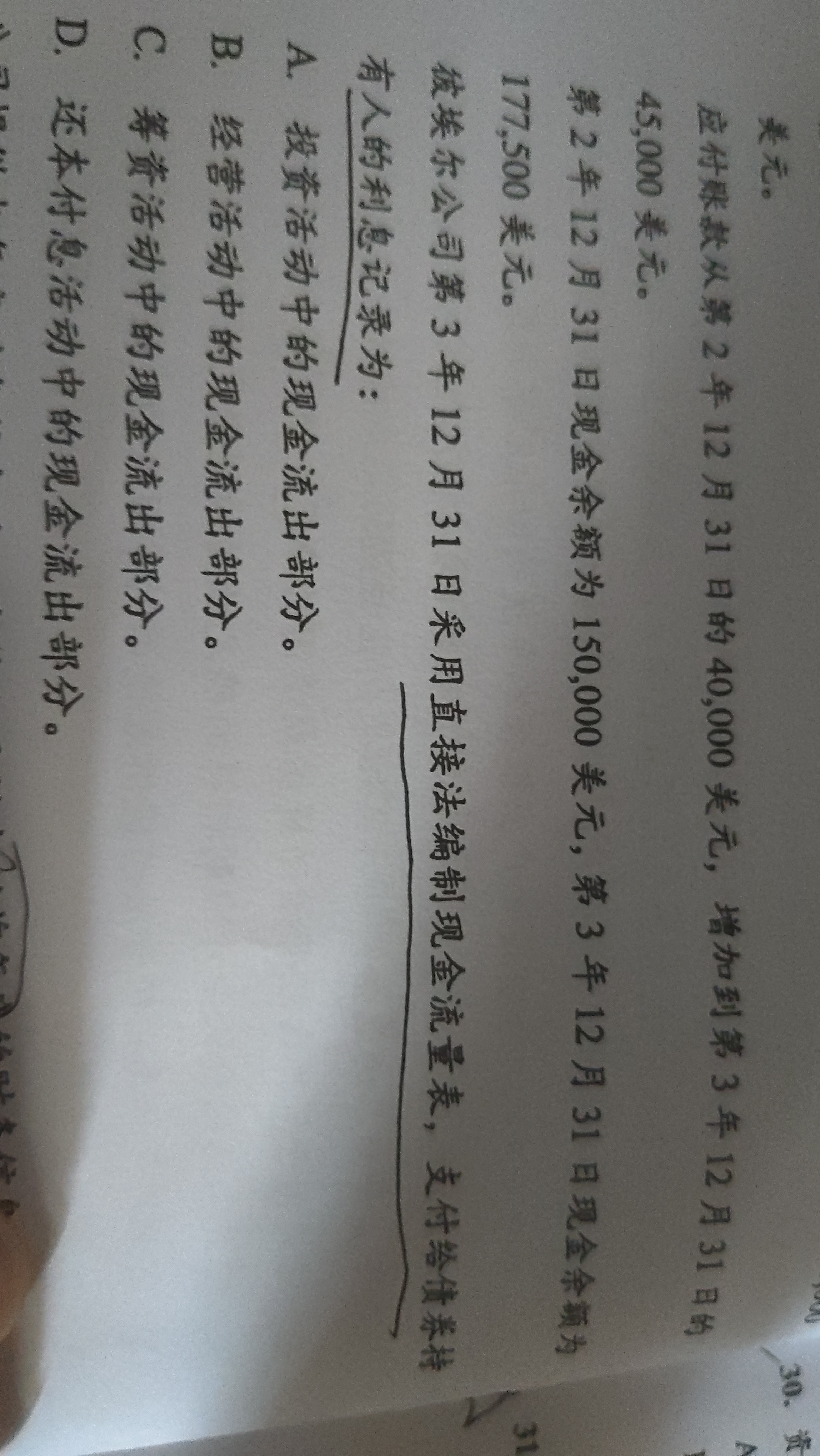 同学你好,偿还债权人本金属于筹资活动,但是支付给债权人利息是经营活动(这里跟国内会计准则略有差异),目前官方解释是:公司是使用经营活动产生的现金流偿还的利息。