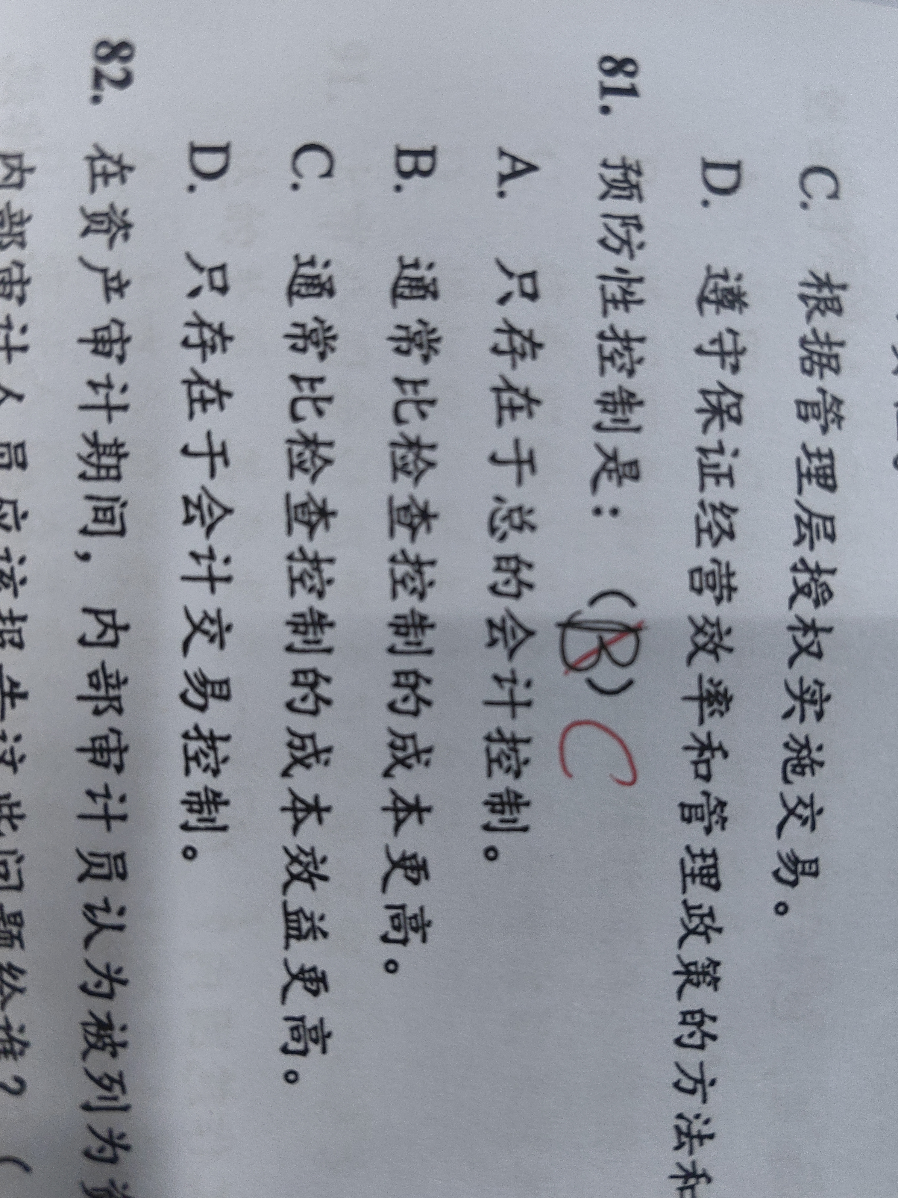 预防性控制比检测性控制更具成本效益。 成本效益不只是比较谁的成本低,简单来说就是性价比。预防性控制通常来说针对的是整个企业的流程以及相应的管理;而检测性控制的范围要小一点,可能仅仅涉及产品检测以及产品线的检修等等。预防性控制能够一定程度上防止不合理的成本发生,而检测控制仅仅是对后来达到效果的程度进行评估。所以相对来说,预防性控制的成本效益理应大于检测性控制。
