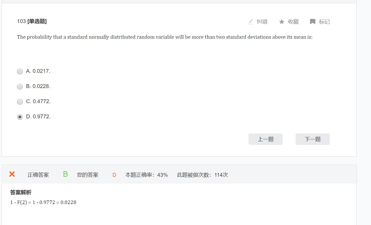 F(2)这里的2代表两个σ,标准正太分布就是均值为0,方差为1的分布;查标准正态分布表2这个关键值对应概率; 另外这一部分,课程中有教你如何查标,看一下课程内容