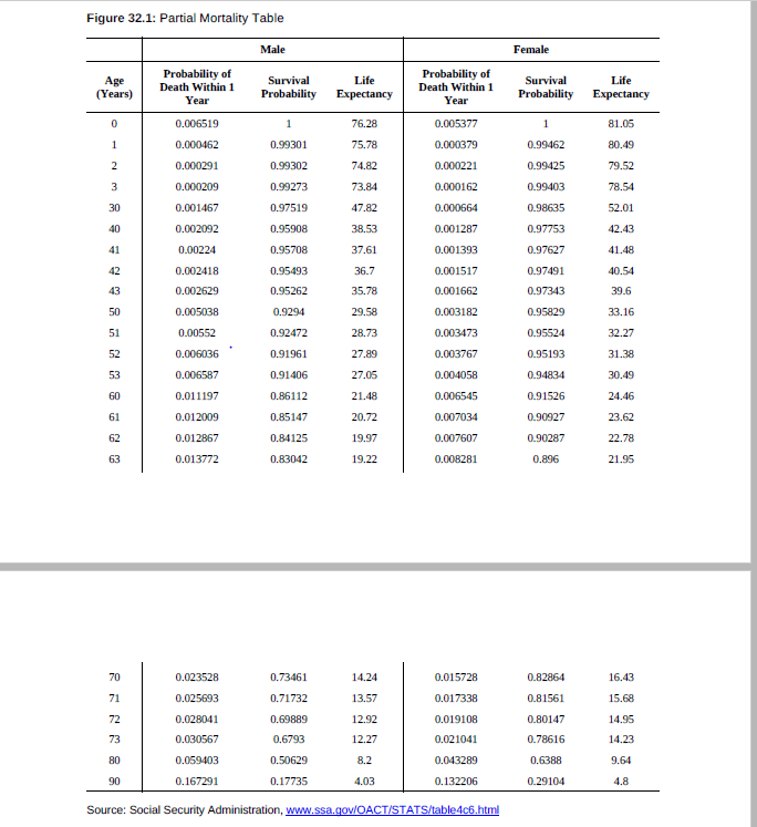 同学你好,看下面的这张表。40岁的male那里,40岁那一年的死亡概率是0.002092