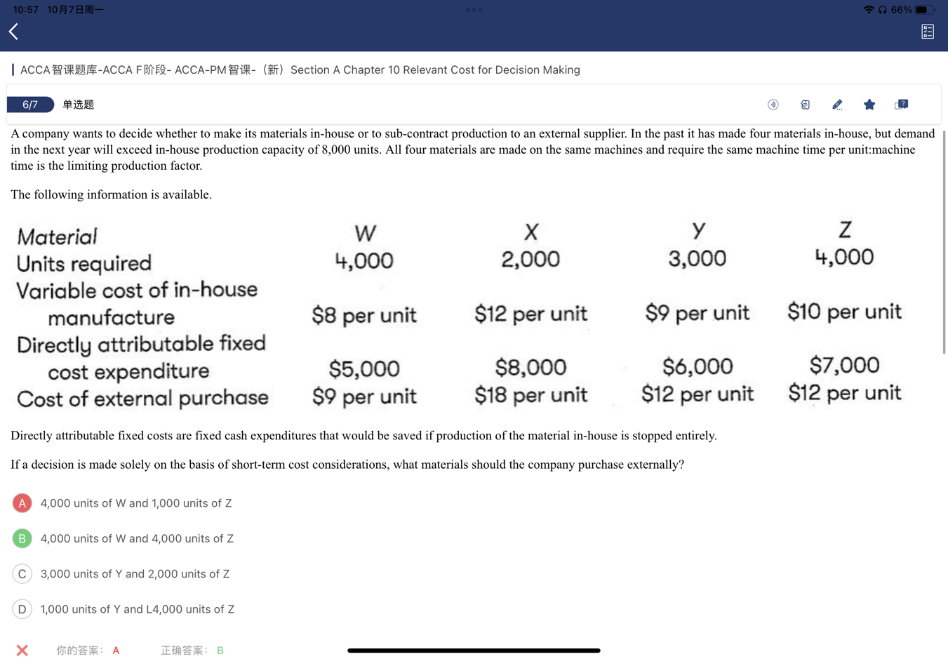 同学,根据答案表格计算得出,W是在外采购比自制合适,占用了4000units,剩余8000-4000=4000units,Z是差异最小的,最适合自制,有4000units。