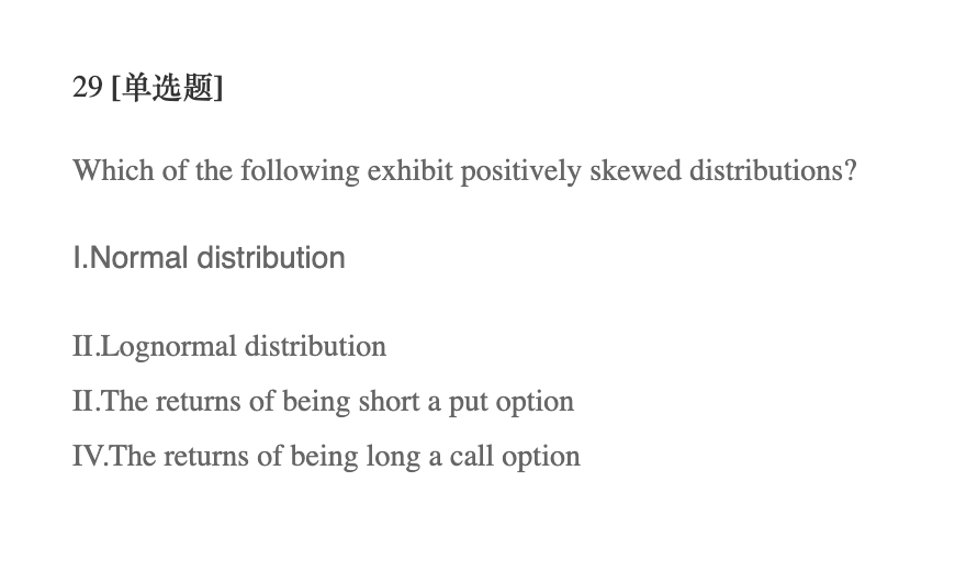long call的曲线图回想一下,是有亏损的floor的,但是盈利没有cap限制,这样一来,distribution就positively skewed了。