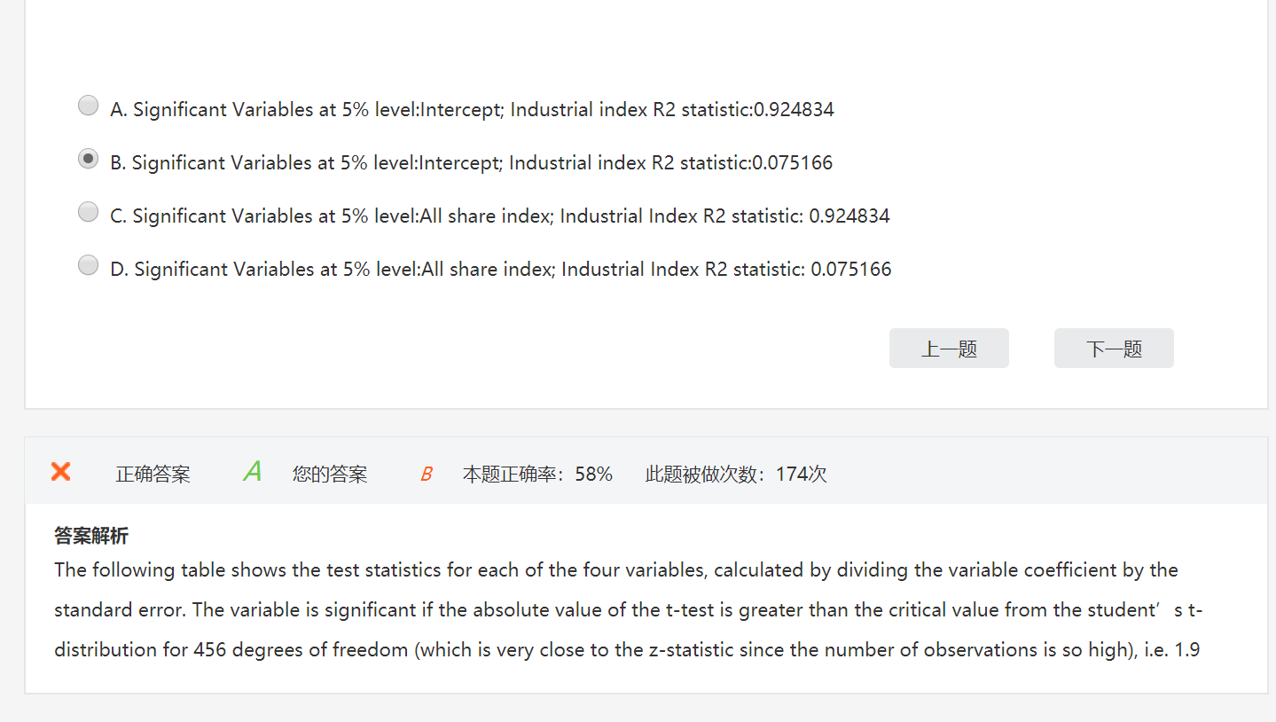 此题考查的是t table和t test的比较,前提是5%的significant和460-1的的自由度。 R2的公式是ESS/TSS,直接计算即可。