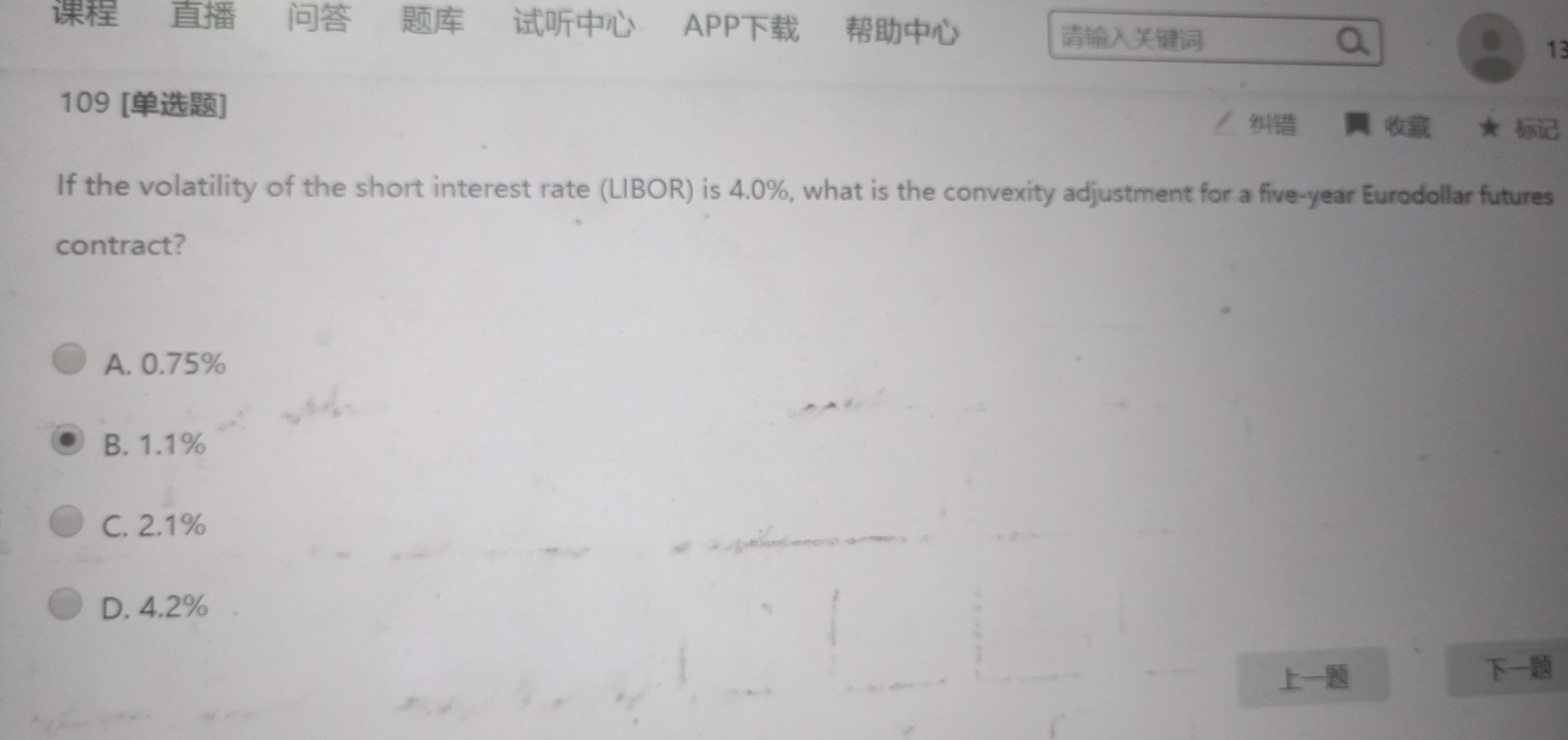 其中T1为5年,T2为5年+90天,即5.25年,standard deviation题目给了,LIBOR也给了,剩下的就是套公式了。