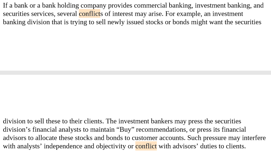 一方面 这些股票需要被尽可能的卖给customers,或者在媒体上尽可能多的出现买入评级,但另一方面,分析员也了解这个企业的实际情况,所以导致维持买入评级和分析员的独立性和客观性出现conflict。