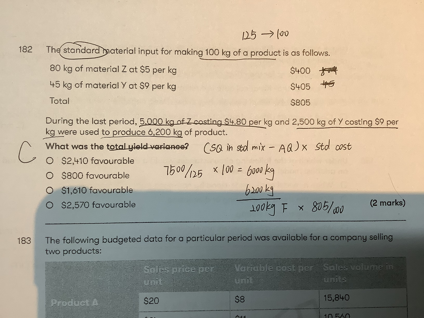同学,按照生产的6200kg数量得出标准的Z使用6200/100*80=4960kg,标准的Y使用6200/100*45=2790kg,但是实际使用的Z是5000,Y是2500,总共7500,那么着7500按照标准的mix混合比例80:45,Z应该是7500*80/(80+45)=4800kg,Y应该是7500*45/(80+45)=2700kg。