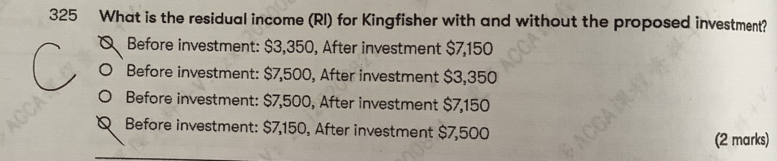 同学,直接使用profit➖CE✖️cost of capital=31900-165000*15%=7150,使用“CE✖️ROI➖CE✖️cost of capital”的问题在于在算ROI的时候结果是19.33333......%,是个循环小数,所以在此基础上再次运算的时候就会不准确。