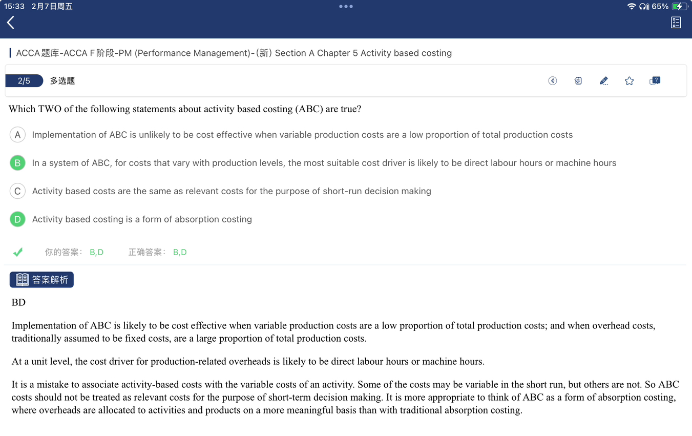 同学,Variable的占比比较低就说明fixed部分比较多,fixed部分就是OH,OH占比大用ABC更加适用,是likely。B 生产水平units是vary变动的,那么hour就会比较合适,相较于units。