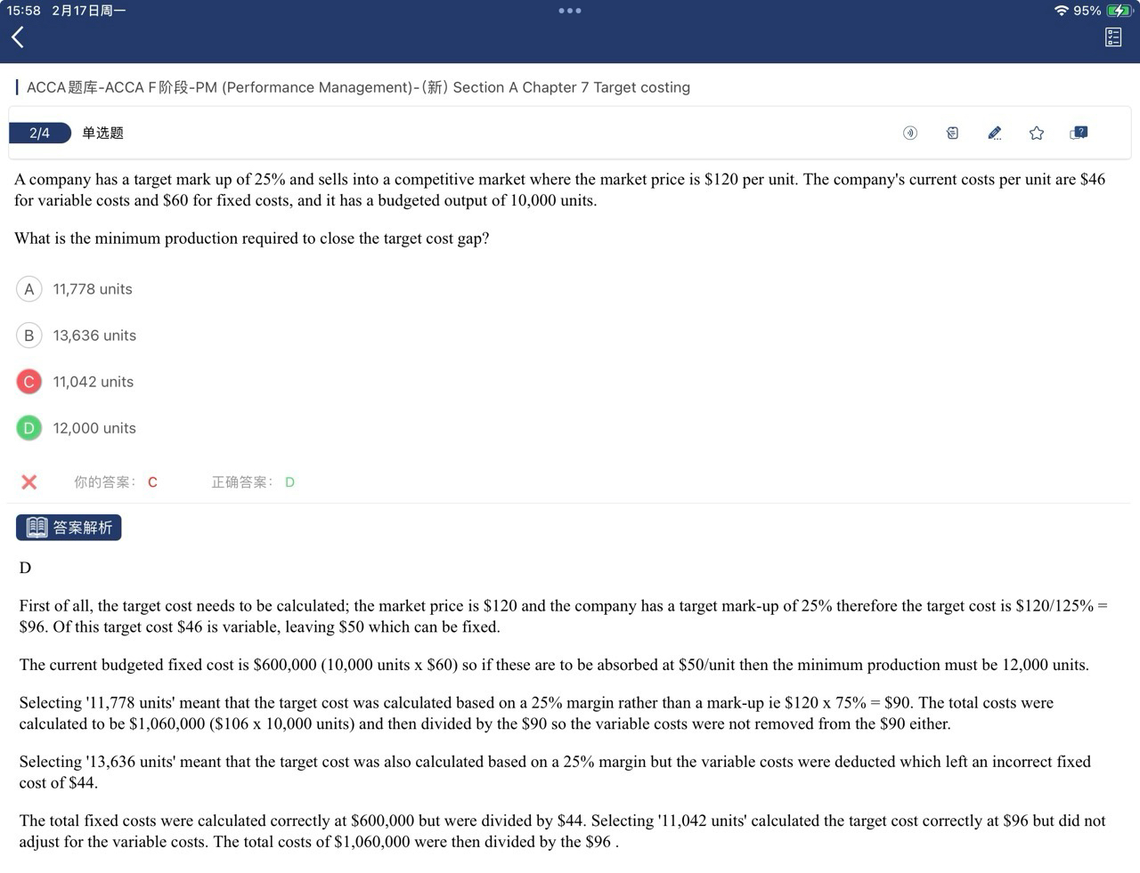 同学,这道题目中总的fixed cost和variable costs per unit是不变的,我们改变的是fixed cost per unit,会随着总的units的增加而变小。