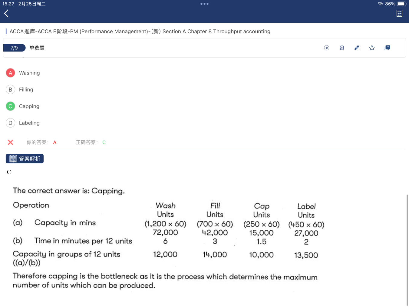 同学,你的题目没有截完整,我刚去看了下原题,题目是让判定稀缺资源的,计算出其产能最小的进行判定,你说的throughput per unit是后续步骤生产排序使用的。
