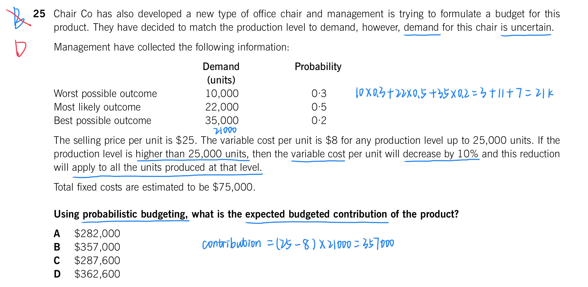同学,高于25000的时候VC会下降,这个条件你没有用上,35000*0.2*(25-8*90%)+(10000*0.3+22000*0.5)*(25-8)。