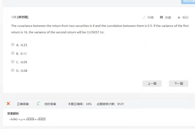你算的是对的,题目中的四个选项都是负数,但是variance不可能是负数,这道题有问题。