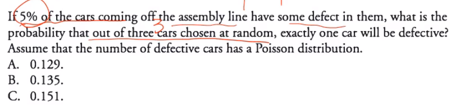 二项分布的极限是泊松分布,题干中也assume这个是泊松分布,所以用泊松分布计算