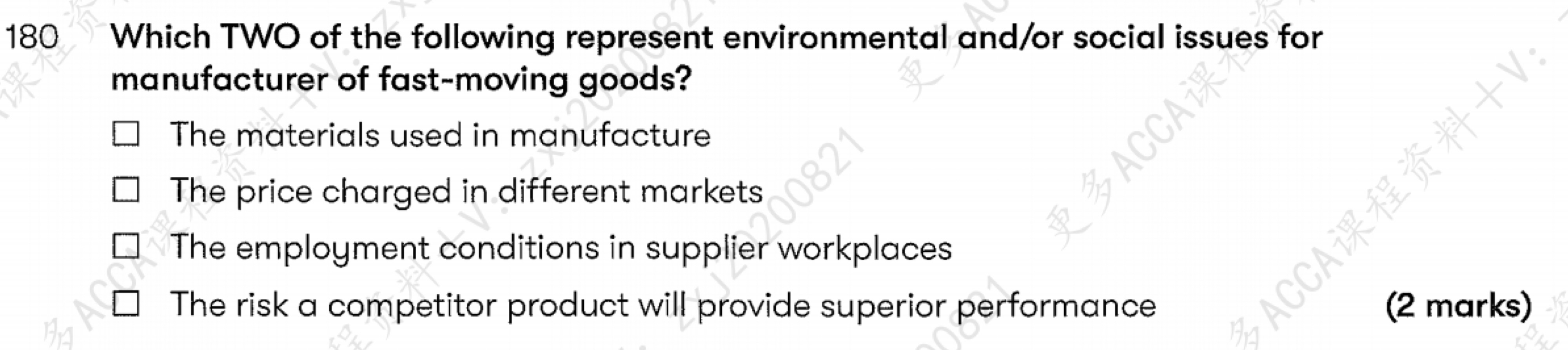 同学,是在问生产快消品会在环境层面或者社会层面应关注哪些事项。应关注生产原材料的来源是否可持续发展,关注生产过程的生产环境是否卫生达标等。