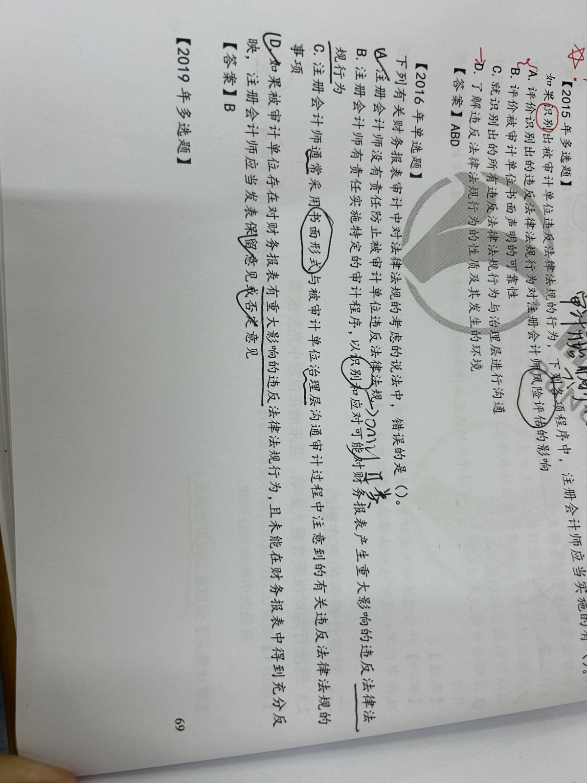 对于第二类我们只需要识别,并不需要实施特定程序去应对可能对财务报表产生重大影响的违反法律法规行为,选项B错误。
