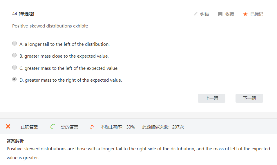 positive skew为right skew,right skew为右偏,右偏大部分数据在左半边。 negative skew则相反。