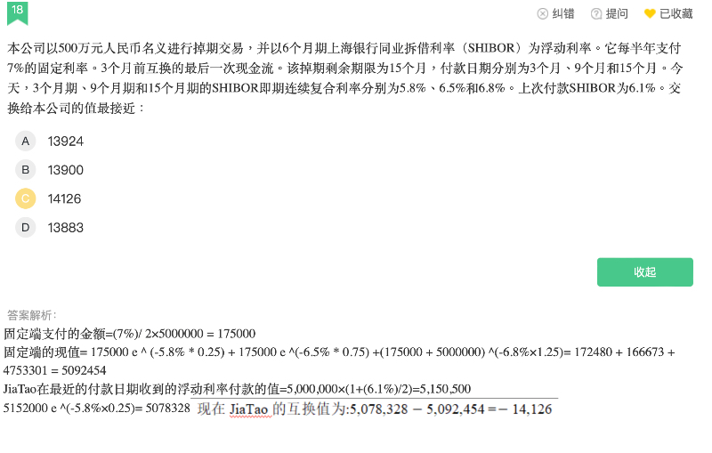 因为题干问的是互换合约的价值,互换合约的价值只会大于等于0,所以负数就取绝对值了。如果题目问净收益的话,那就可以负14126了。