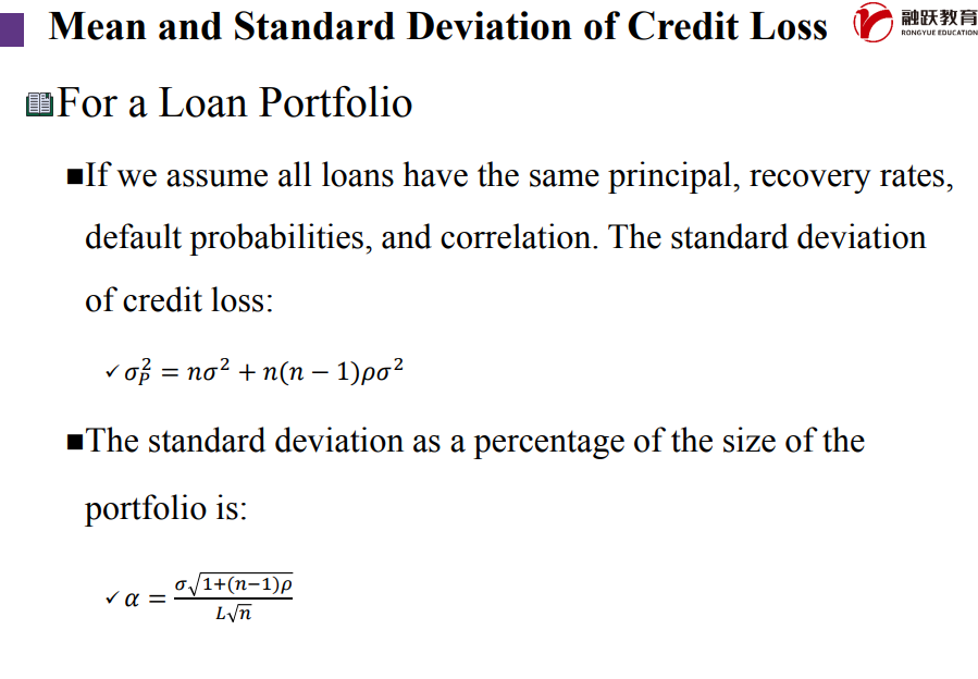 这道题计算的背景是组合中多个资产的PD、RR、相关系数都一样的情况下贷款组合损失的标准差占其规模的百分比,而不是第一个公式所对应的组合标准差,不要搞混了,具体位置参考图片