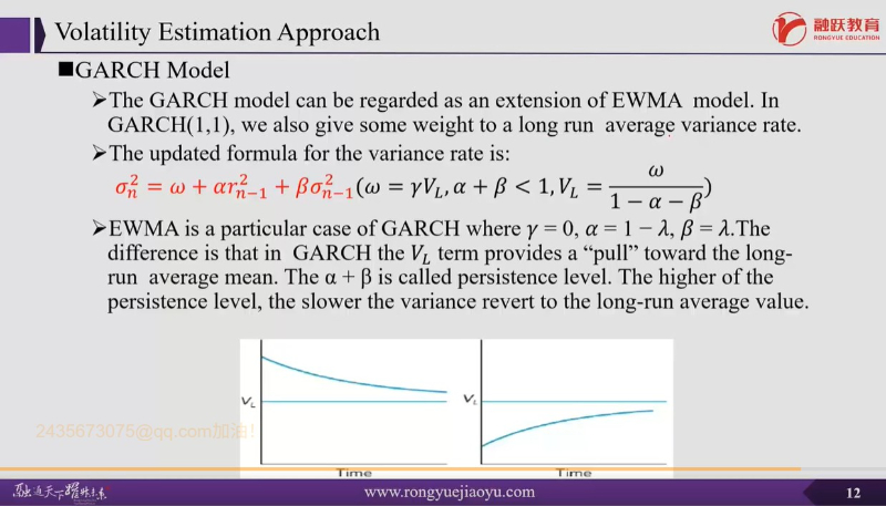 如果没有均值复归(即a十β=1,如EWMA),波动率会永远停留在高或低水平,不会回到正常状态,这在长期是不合理的。