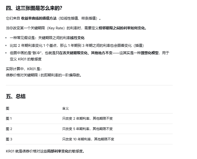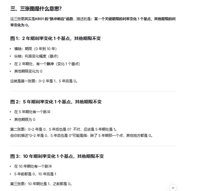 图片没有解释我的问题,请问是否可以老师解答一下?我想问为什么第一张图0-2年是1,5年后是0,也就是2年期利率变化,为什么会影响0-2年?第二张图为什么0-2年是0,5年后也是0,第三张5年前都是0,10年后是1?10年期利率变化,为什么会影响10年后的所有利率?