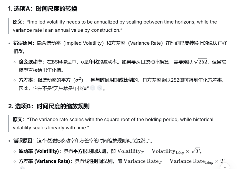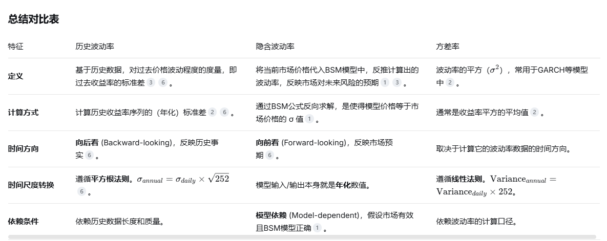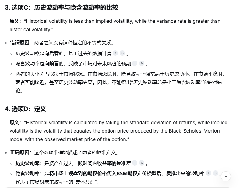 这三个概念的出处已经在解析中明示了,历史波动率(Historical Volatility)、隐含波动率(Implied Volatility)和方差率(Variance Rate)三者分别在数量分析方差标准差部分、BSM模型、数量分析方差部分和估值模型科目的波动率模型章节。三者区别参考图片。