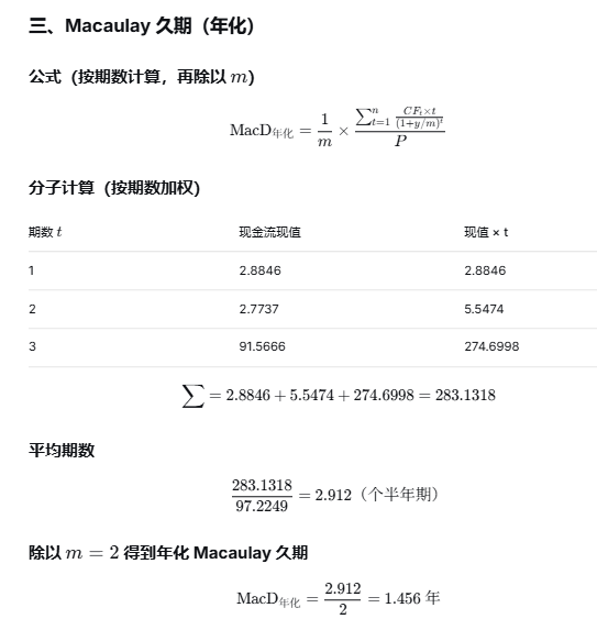 第一个问题参考图片,第二个问题:成立,但Macaulay久期必须是年化的。