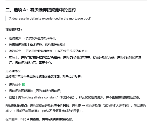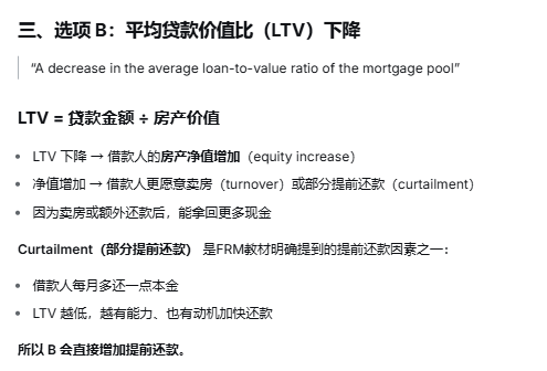 除了LTV增加,利率降低可以提高prepayment rate,考试还会考哪些因素的影响?default rate为什么不会影响还是不太,可以再解释一下吗?