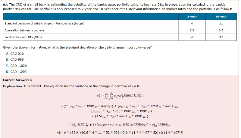 请问这道题的考点是什么?为什么standard deviation of portfolio change是:std(sigma_2Y*KR01_2Y+sigma_10Y*KR01_10Y)?这个式子是什么意思?