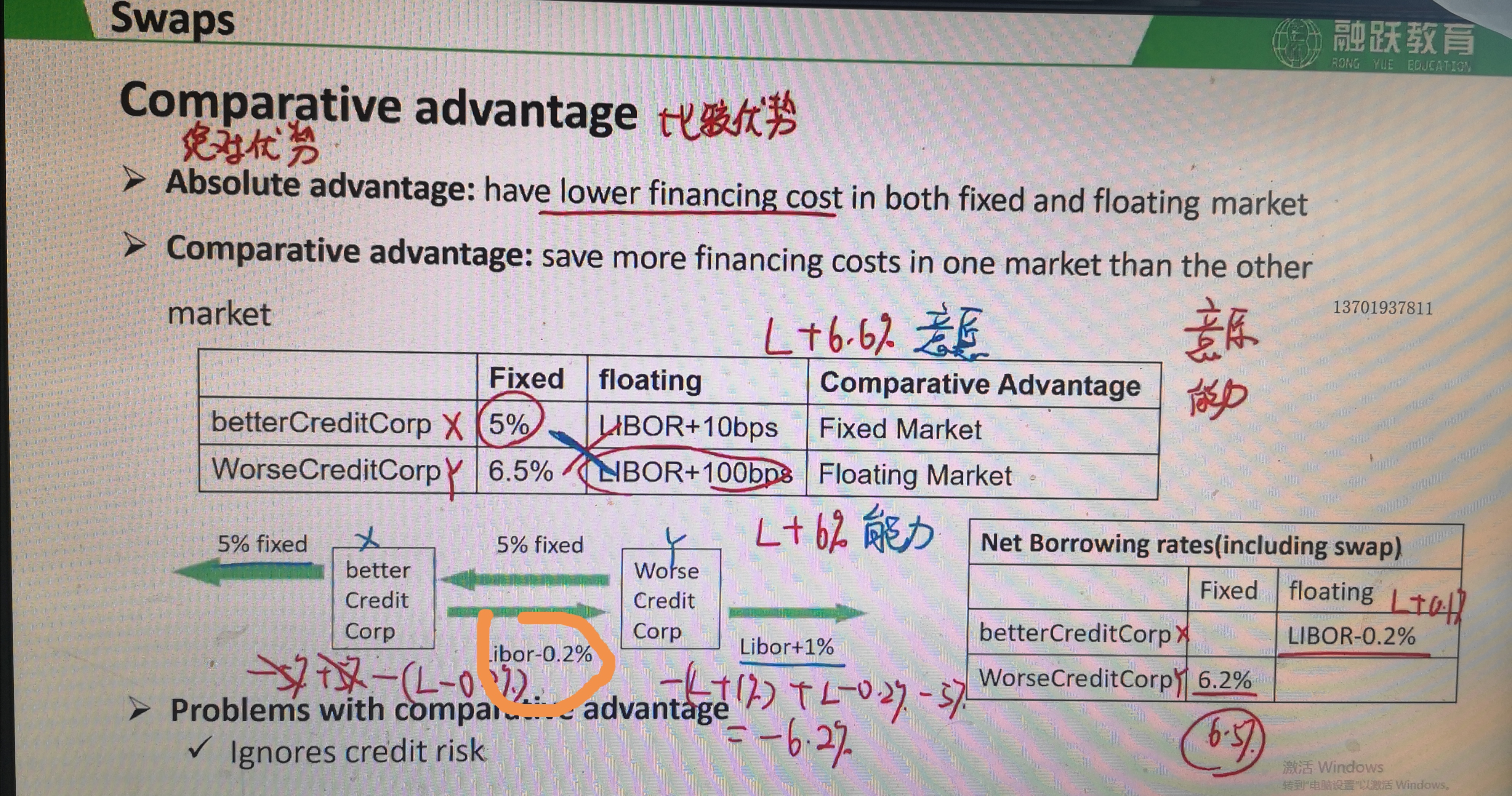 在相对优势下的借款总利息是L+6%,如果不用相对优势的话借款的总利息是L+6.6%,所以就是相对优势下,能节省0.6%的利率,各分一半的优势,就是0.3%,所以你问的那里就是L+0.1-0.3%=L-0.2%