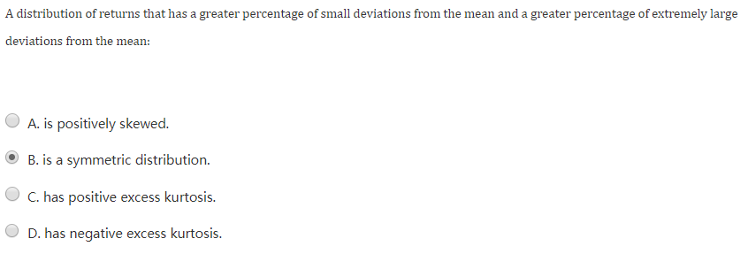 一个收益分布,其对均值有较小偏离的概率高,对均值有极大偏离的概率很高,这什么分布的特征? 应该是尖峰肥尾。