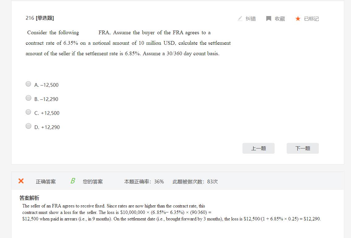 30/360day count的意思是每个月30天,一年360天,不是FRA的期限。 30*3应该是题目信息有遗漏,同学知道这个方法就好。 12500是90天的时候。FRA的价值,FRA是支付利息差的。