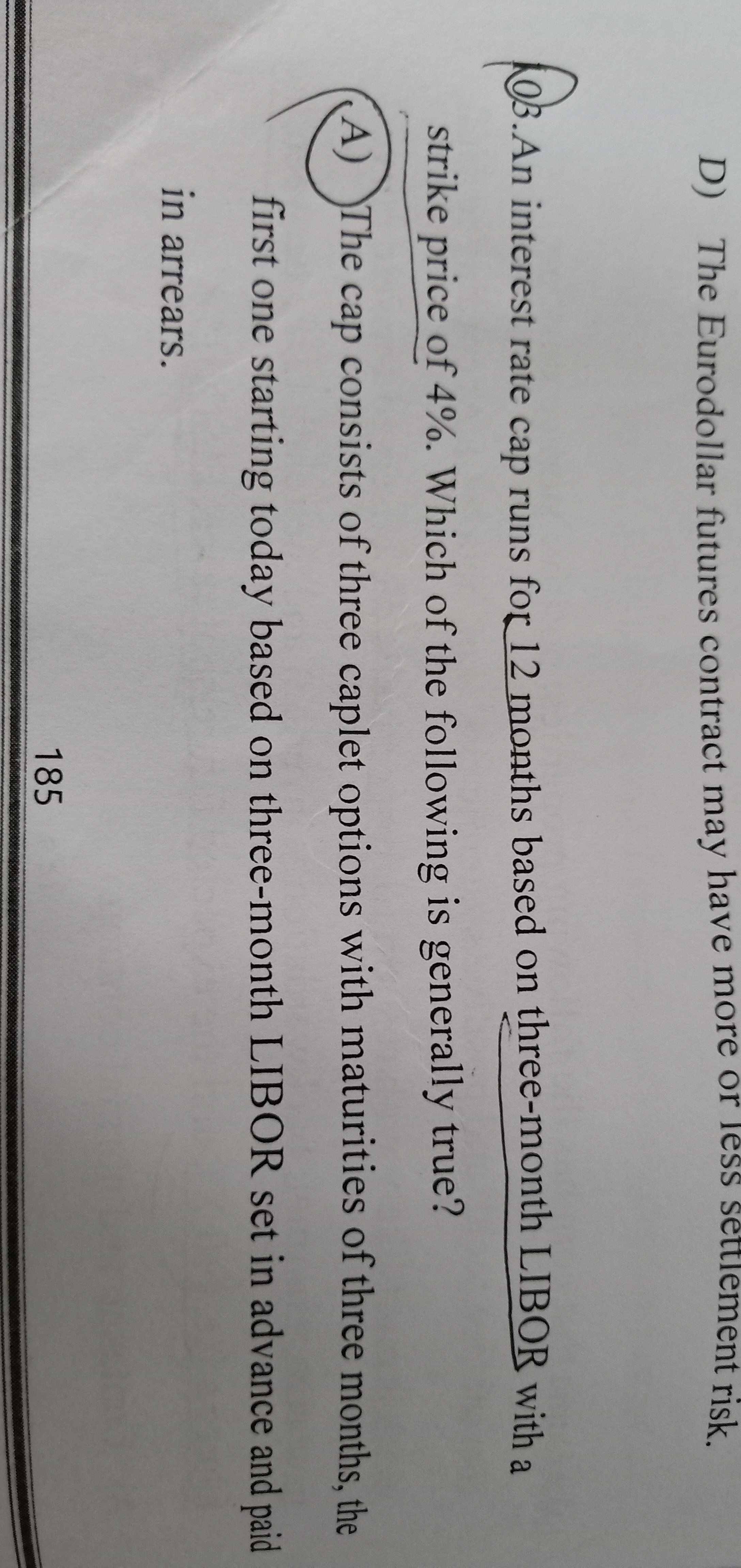 利率顶(interest rate caps) 如果贷款利率超过了规定的上限(cap rate),利率顶合约的提供者将向合约持有人补偿实际利率与利率上限的差额,从而保证合约持有人实际支付的净利率不会超过合约规定的上限。 题目的意思就是一个利率顶是3个月,一共12个月,4期,第一期不设期权。caplets是利率期权,从三个月的时候开始是第一个。