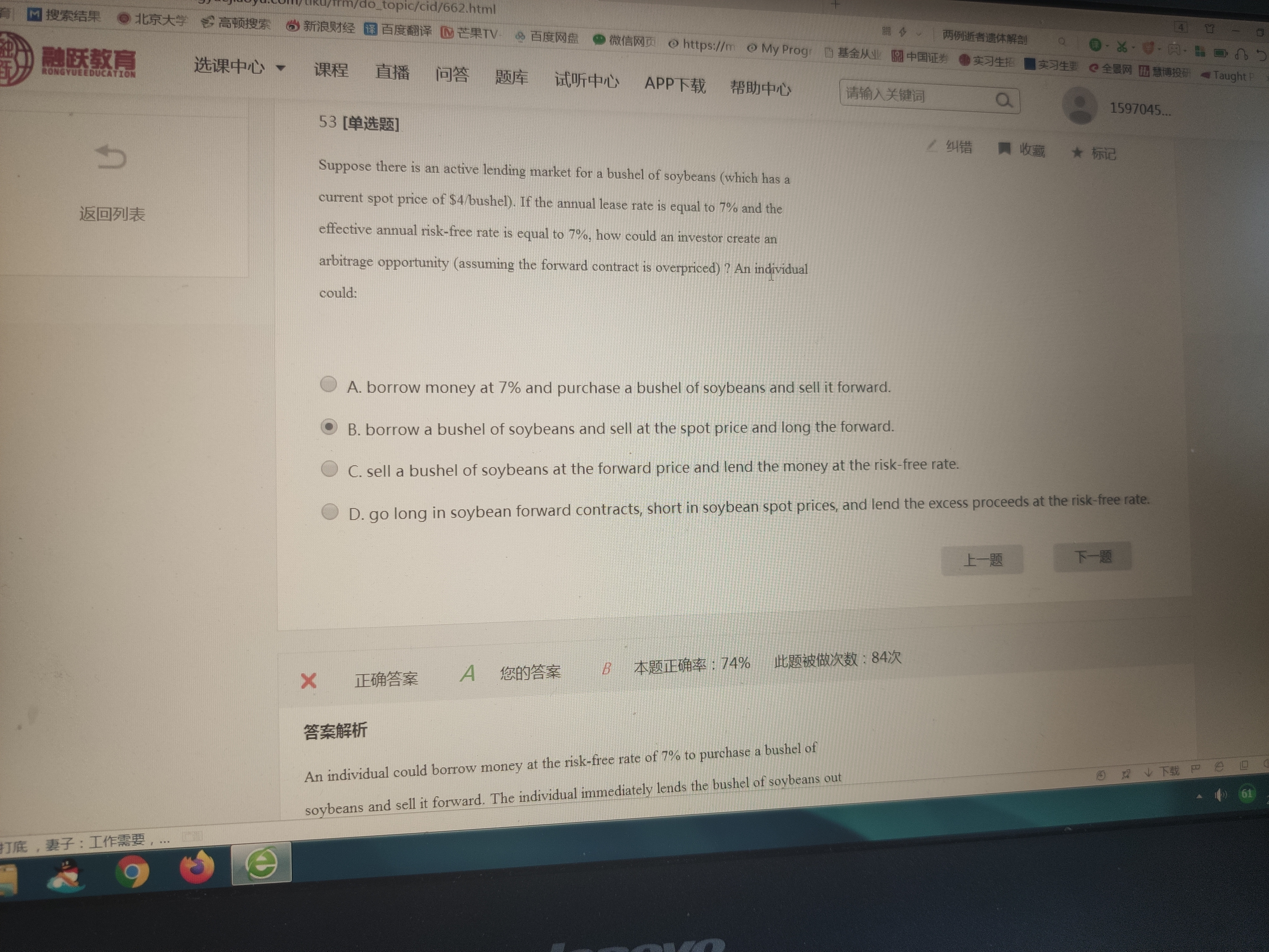A更准确,投资者需要借入一部分实物,在forward市场卖出去。如果没有A选项的话,可以选C。