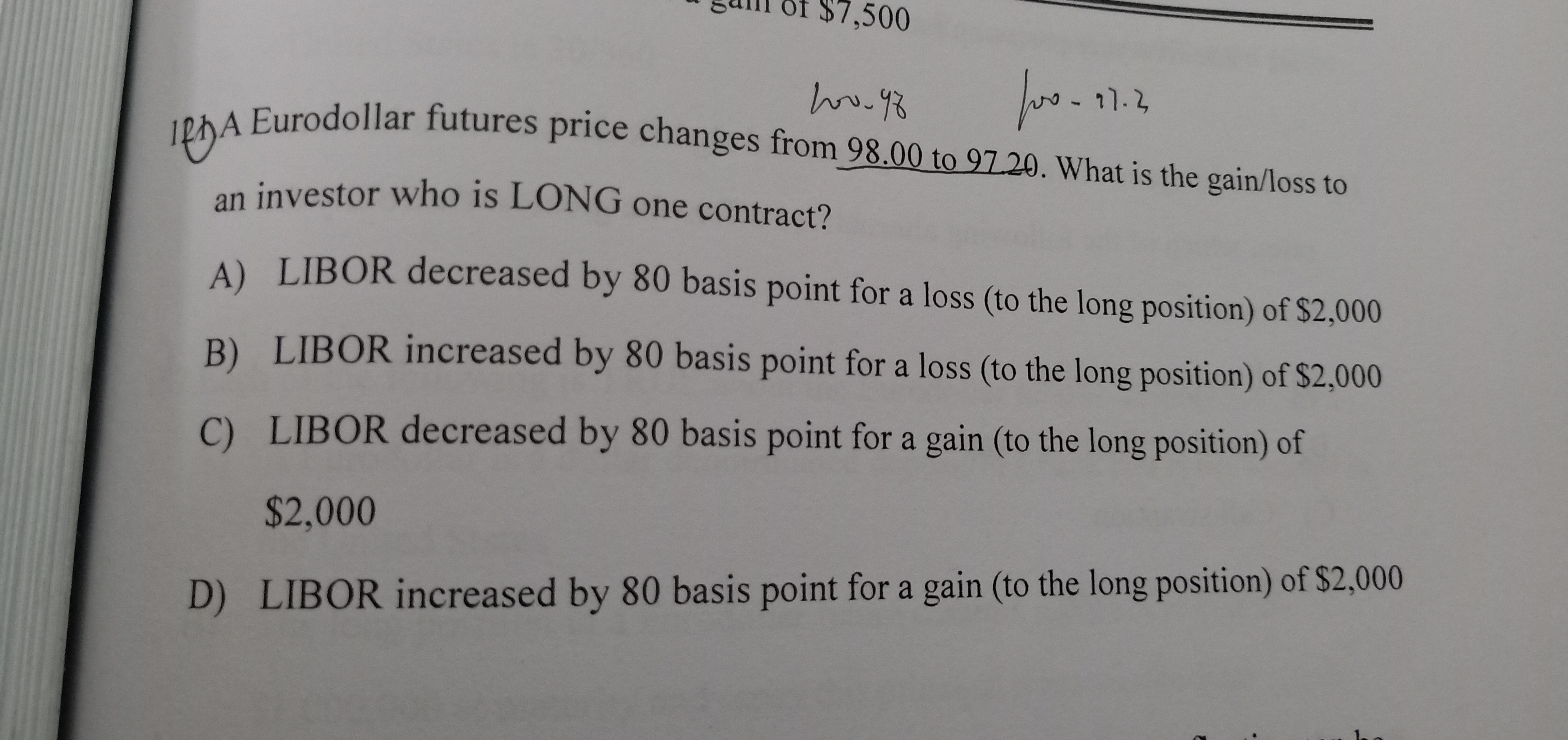 欧洲美元期货,利率上涨一个基点,一份欧洲美元期货的价格下跌25美元,这个要记住。再精讲班的课程中也有详细的推导过程。