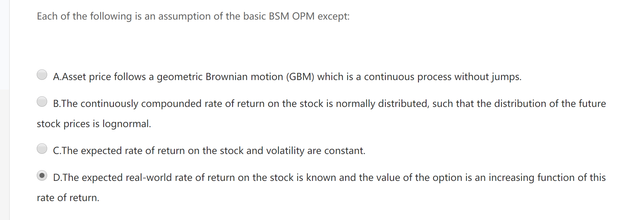 资产的价格运动符合几何布朗运动,并且价格是连续变化的,不会跳跃。