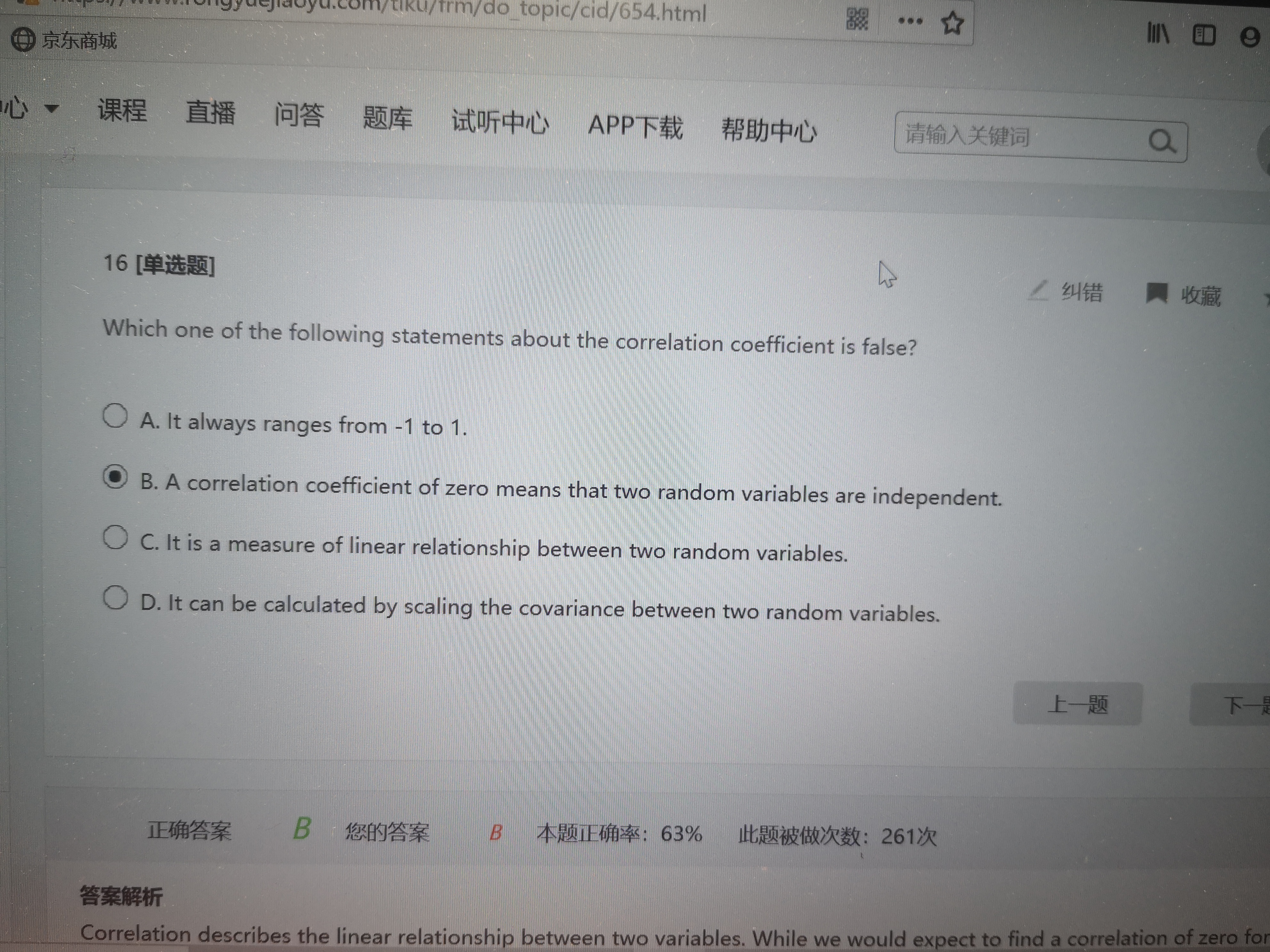 D的意思是相关系数等于协方差除以两者的平方根之积啊。就是对的