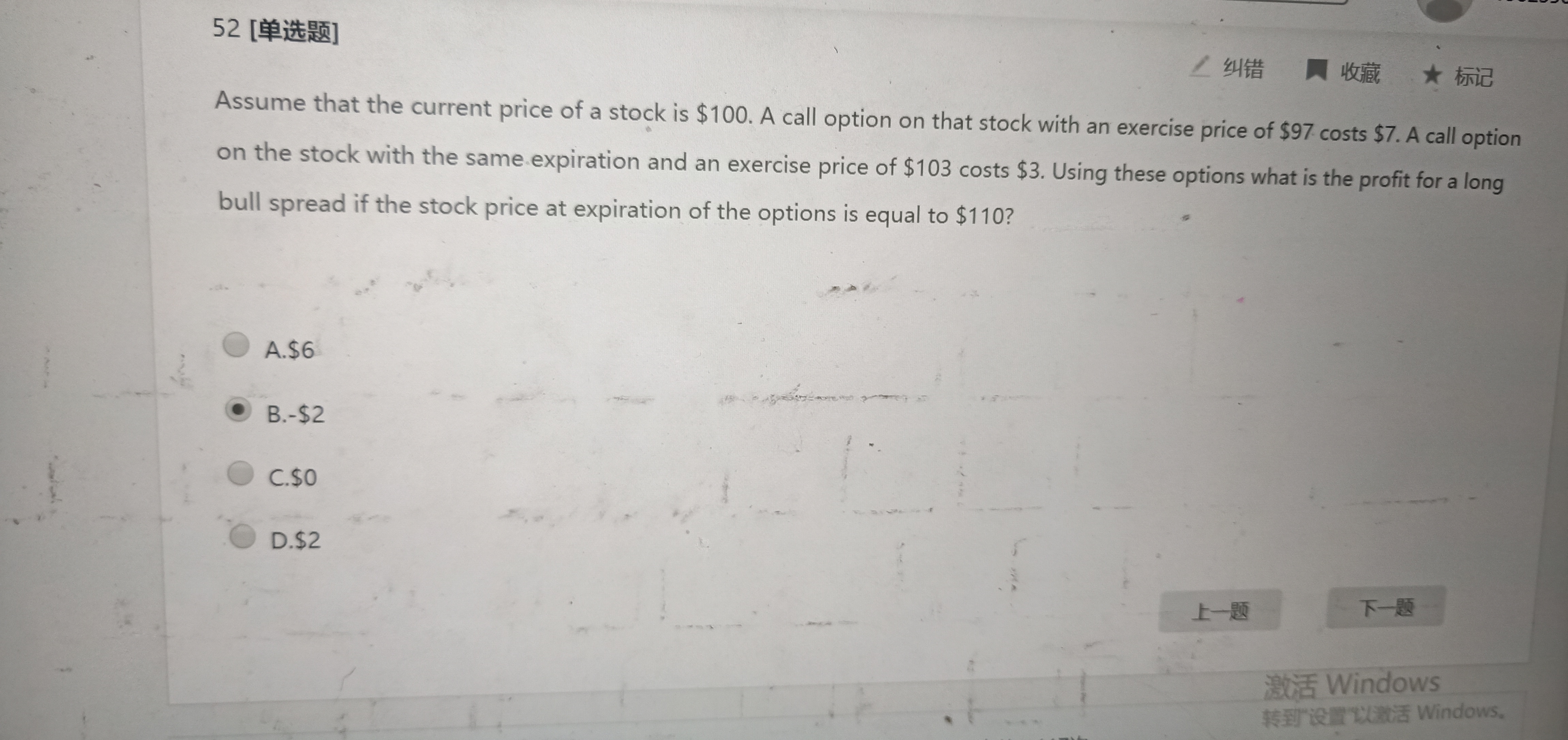 bull spread 牛市价差策略,低买高卖。max(110-97,0)-7-[max(110-103,0)-3]=2