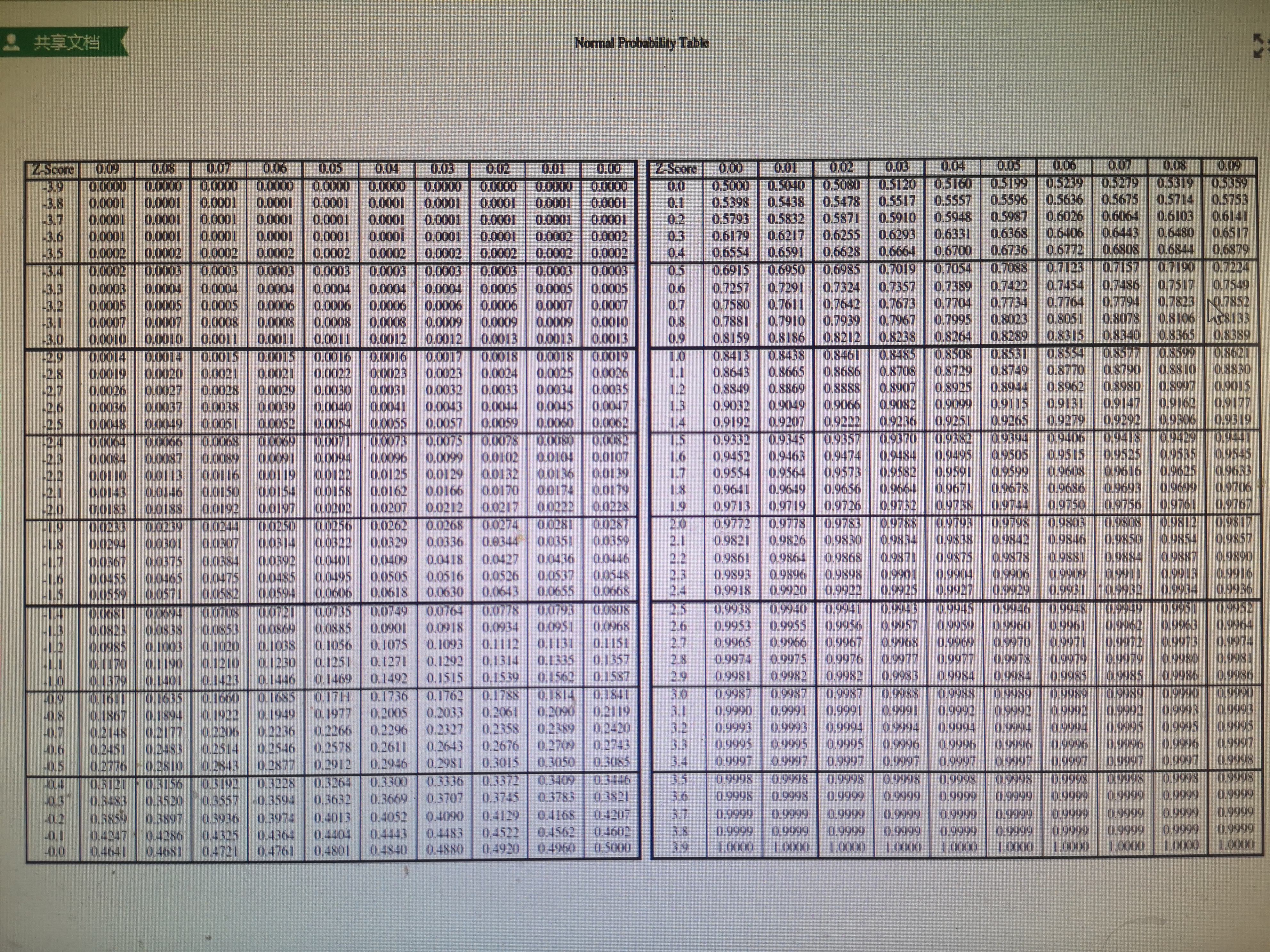 P(-0.25)=1-p(0.25),横轴找0.2,纵轴找0.05,对应的数据就是p(0.25)