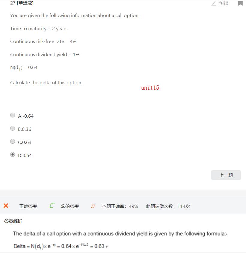 这道题股票又分红,计算delta需要调整。在没有分红的情况下,这两个是一样的。