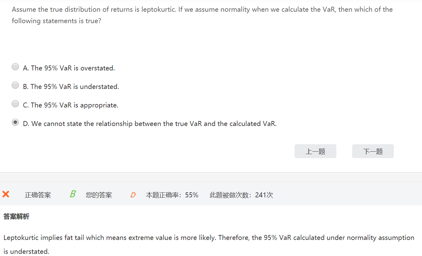 是选项里要求用的啊,用正态分布考虑尖峰肥尾,肯定是低估。