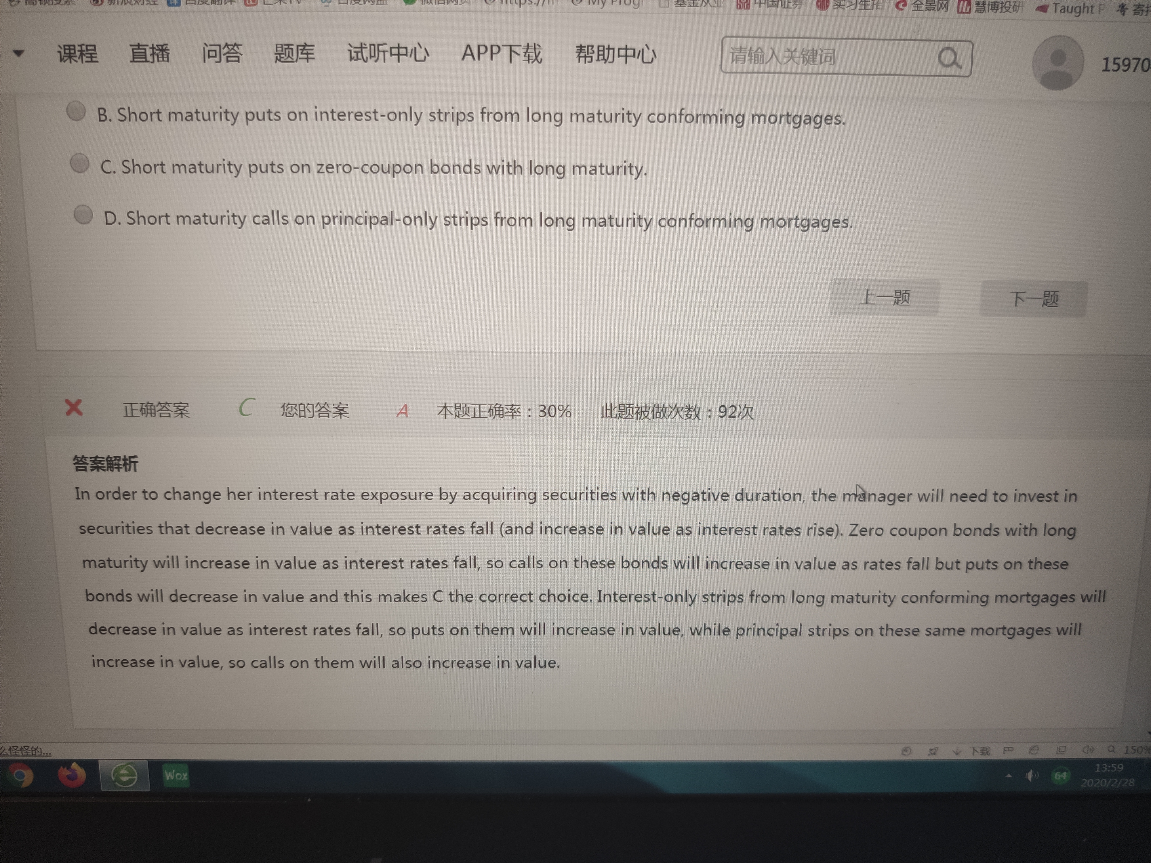 你没看清解析,最后三行说的是利率下降的时候,IO的价值下降,(while)与此同时PO的价值上升。所以解析里说的是利率下降PO价值上升。