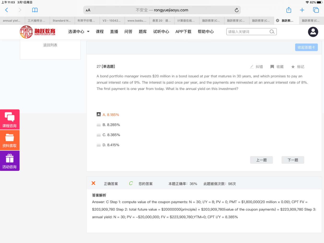 这是因为reinvestment利率和interest rate不一样 所以多出一步计算 YTM=0可以忽略 只靠前三项就能算出结果 在考试的时候 此种题一般不会出 因为太拐弯 大部分考生都不会再2.4分钟算出来的 考试题会比mock难 但是相对于题库的题来说简单很多 不要压力太大 官方出题一般目的是考察考生的理解能力 而不是手动计算速度 只要对考点理解了 肯定能得分 考的不会太深