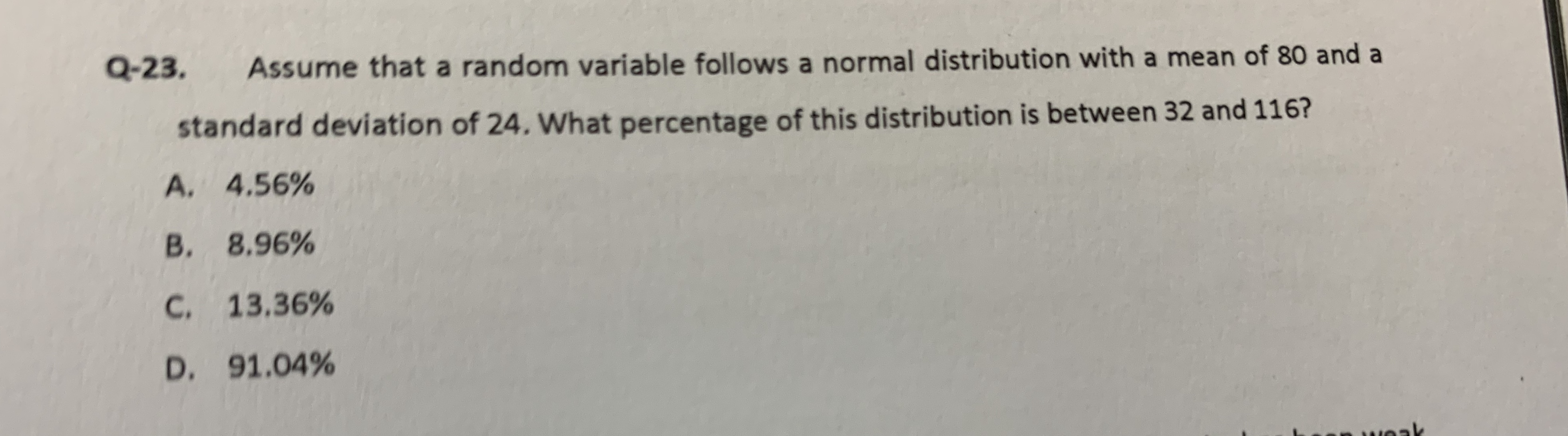 通过mean+/-z*sigma,分别等于32和116,就可以求出两个关键值,然后通过差正太分布表就可以得到两个关键值分别对应的概率。两个关键值中间所夹的部分就是题目问题