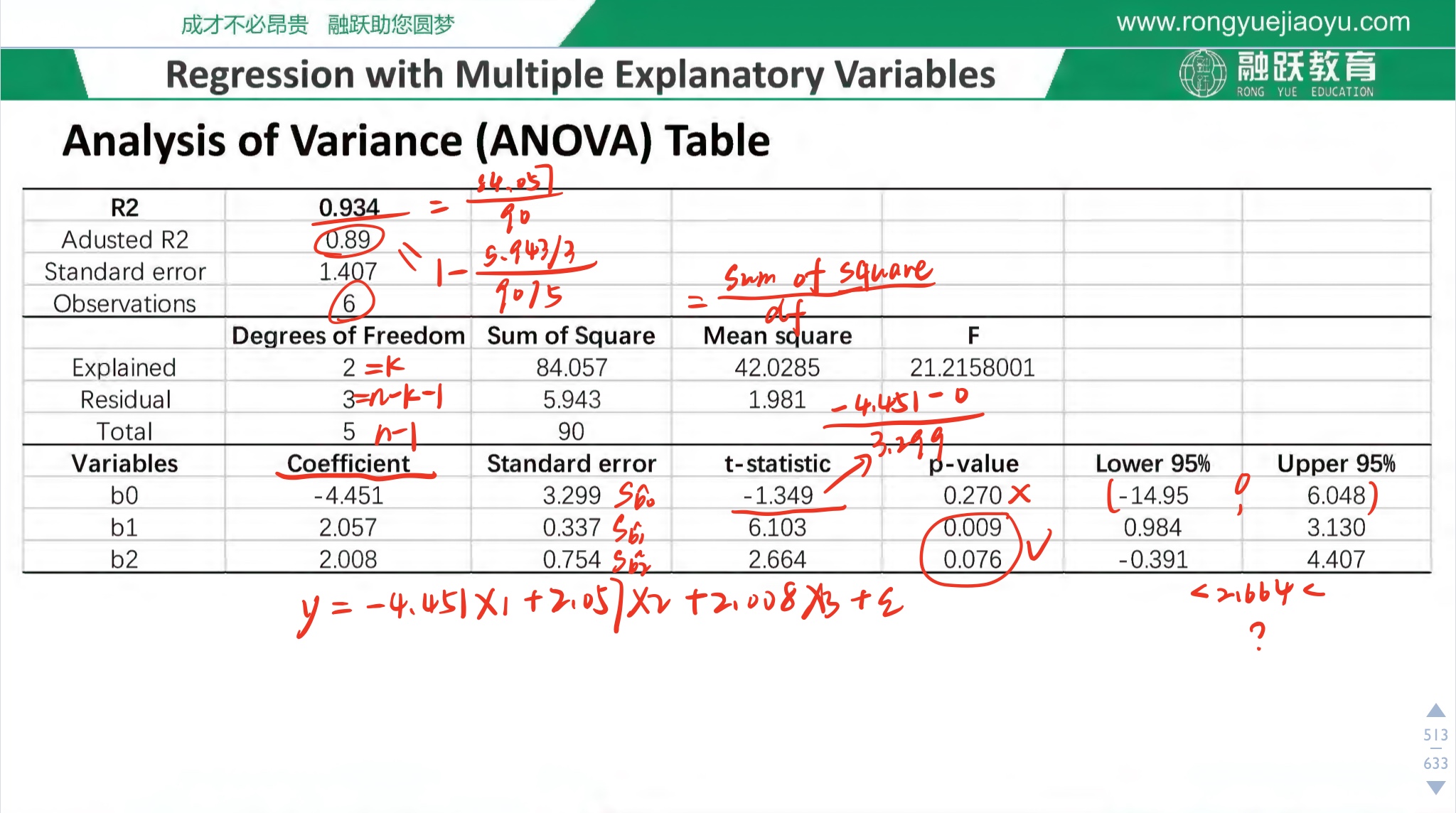 同学,你的b3是指b2吧。t=2.664应该是指在置信区间之外的吧。与p没有相反。 你说的b1是指b0。lower 95%是负值,upper 95%是正值,0刚好在这个范围内。也就意味着出现零是合理的。所以再假设不等于0来判断显著性是不合适的。