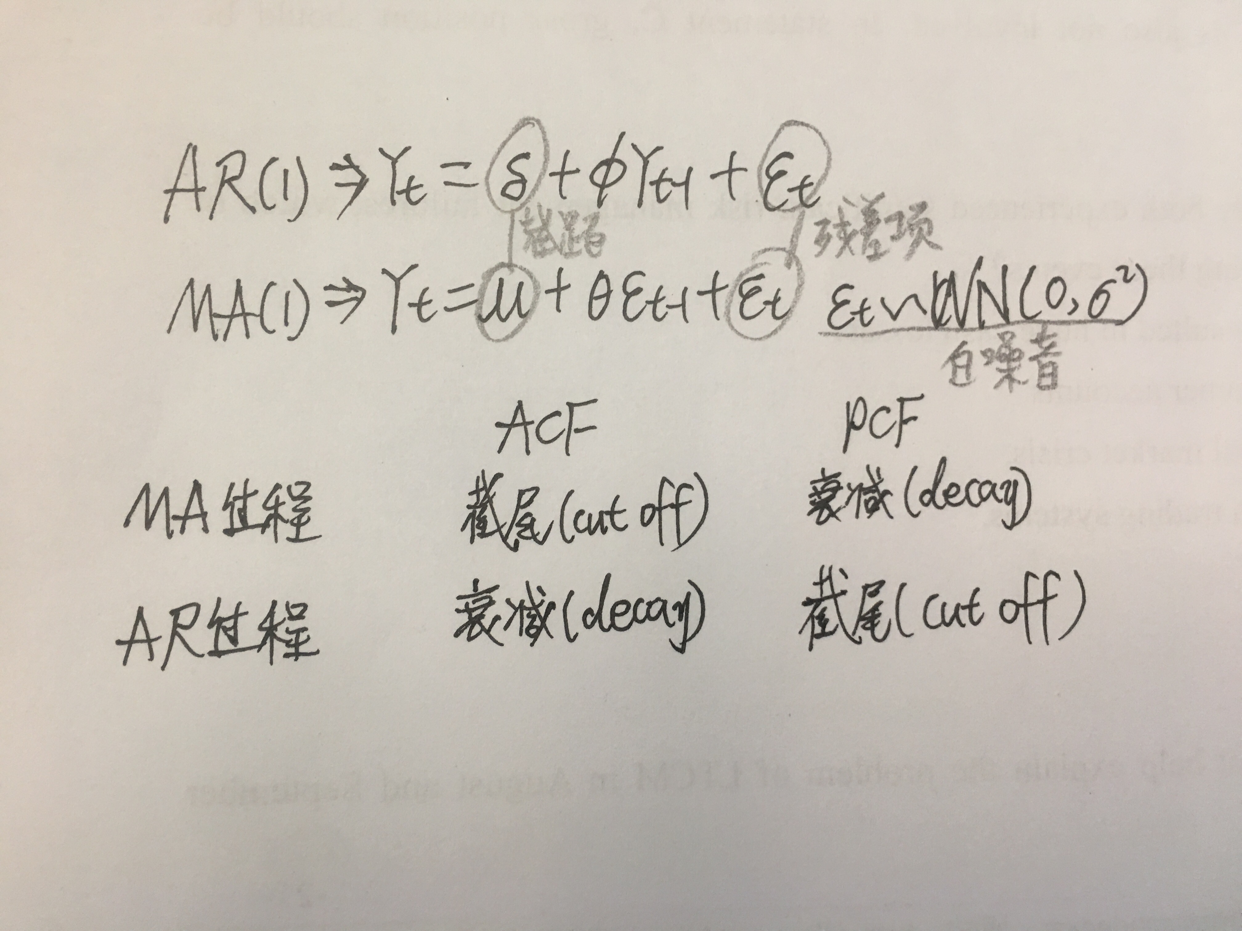 autoregressive的ACF和moving average的PCF,equation的系数之间没有关系,AR(1)和MA(1)的定义式是不同的含义,只是AR和MA模型的后续推导比较相似,还有AR和MA的ACF和PCF性质可以放到一起去记忆。具体参考下图