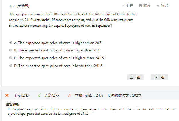因为执行价格是expected spot price,241.5是假设的实际价格,只有执行价格高于市场价格的时候,才会赚钱。