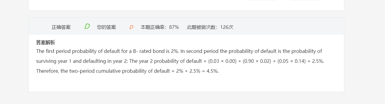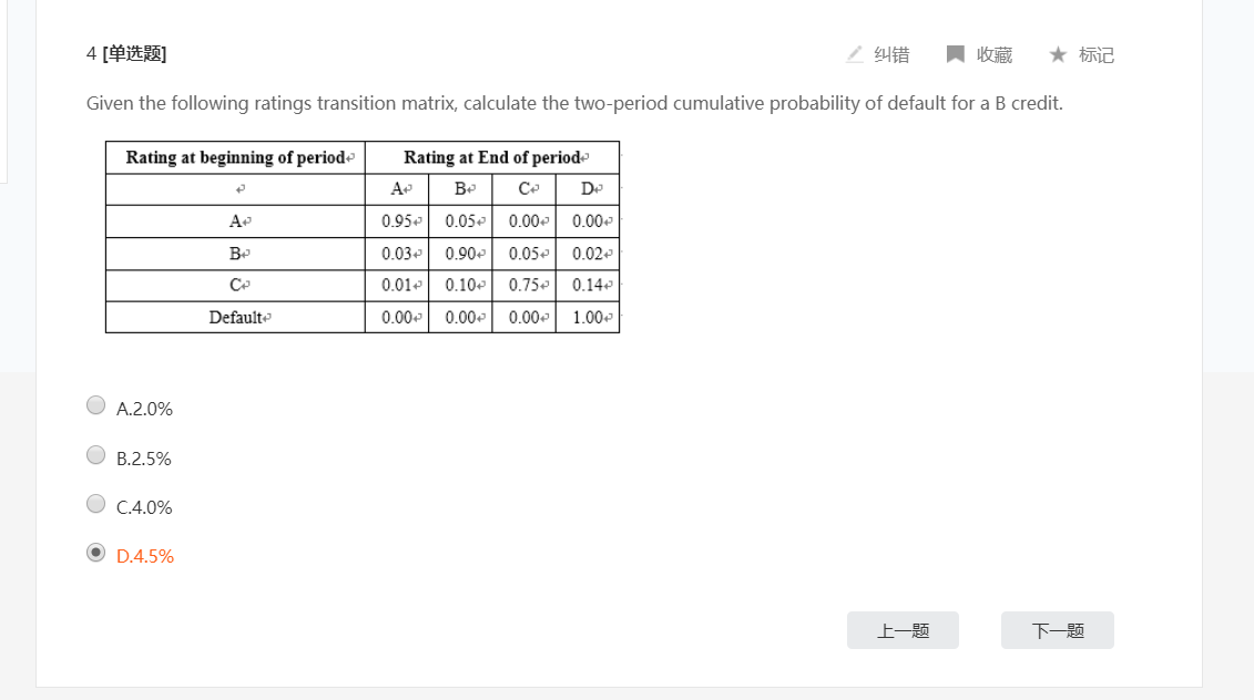 D就代表的是default ,从表格里看,横着看B的那一行,最后一个格子代表的违约,就是0.02