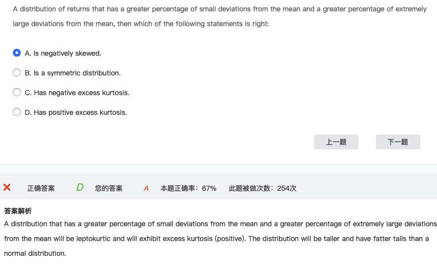 题目的意思是大部分距离均值小,还有大部分距离均值非常远,所以是尖峰肥尾。