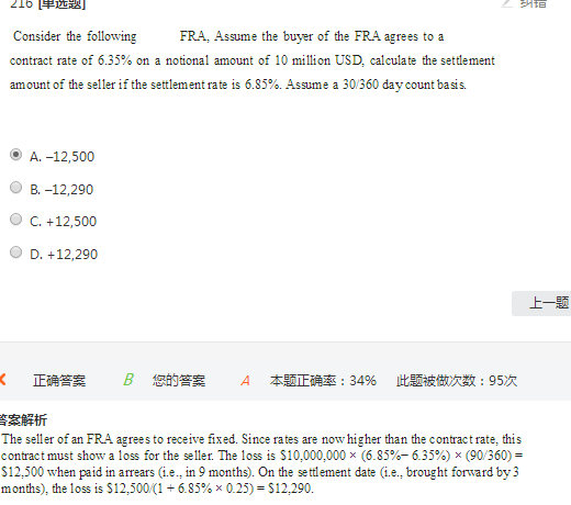 这个题干中FRA前面的期限数据有漏项 IT会修正一下的 此题考查的就是FRA的价值计算