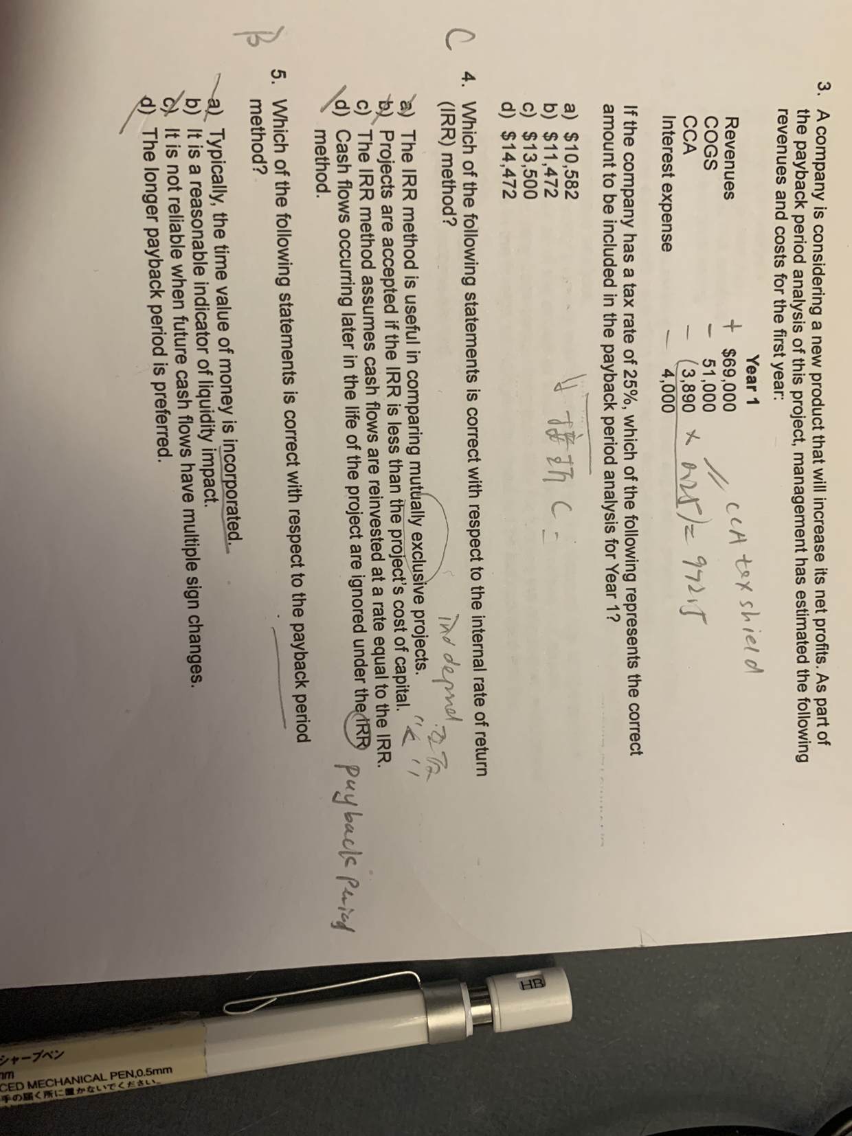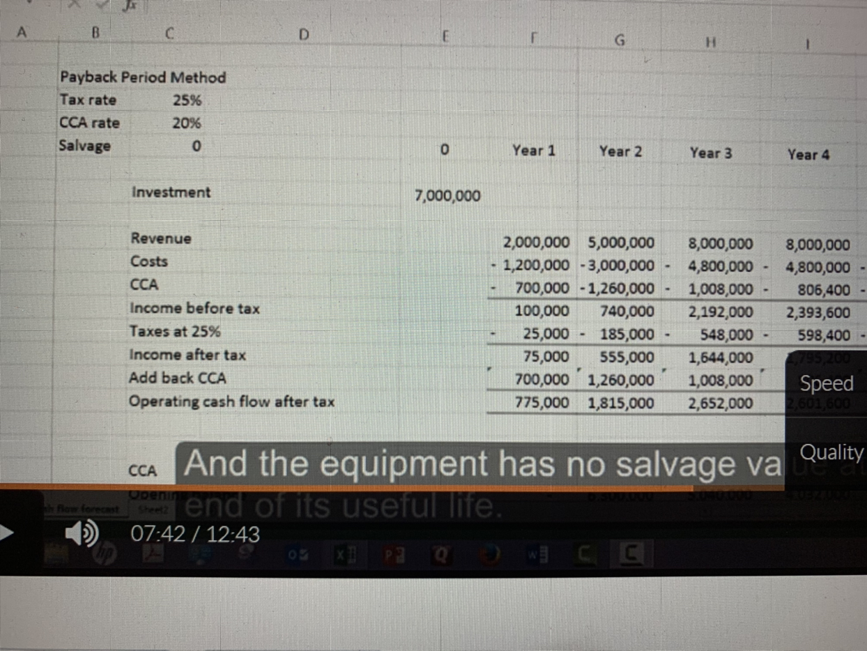 payback period 是回收期,指的是现金流的回收期。CCA折旧虽然抵减利润,可以抵税,但是没有现金流流出